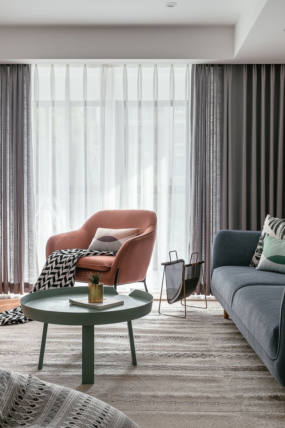 客厅、餐厅和玄关的空间采用了木饰面作为墙面与吊顶的隔断,让家里的一切看起来都更为有序。 面两道木色也划分出了留白的空间,配合性地摆上餐桌餐椅,用餐时光也显得更有仪式感了。