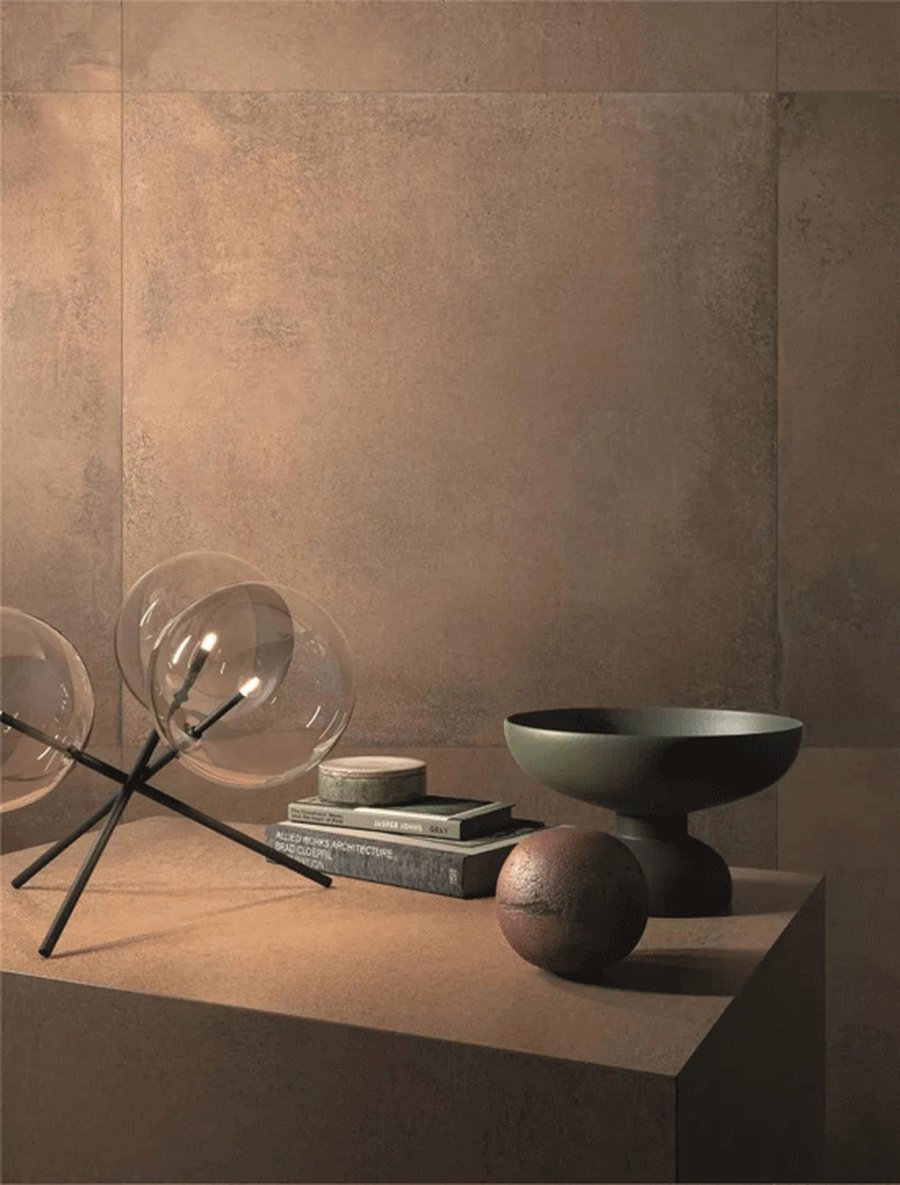 流行趋势:回归自然。从前,光滑、平整是对瓷砖的普遍认知。然而随着“光”审美疲劳以及现代生活审美的提升,裸露的水泥质地、自然的土黄色,掀起一股复古、回归自然的市场热潮,很快席卷家居界,成为城居者追求个性与时尚的态度表达载体。