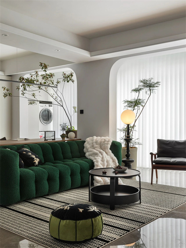 ①面料与颜色 沙发面料质与颜色可以根据装修风格或家庭使用习惯来选择。 奶油风、中古风选择浅色布艺沙发,现代风、轻奢风选择黑白灰米茶棕等皮质沙发等。