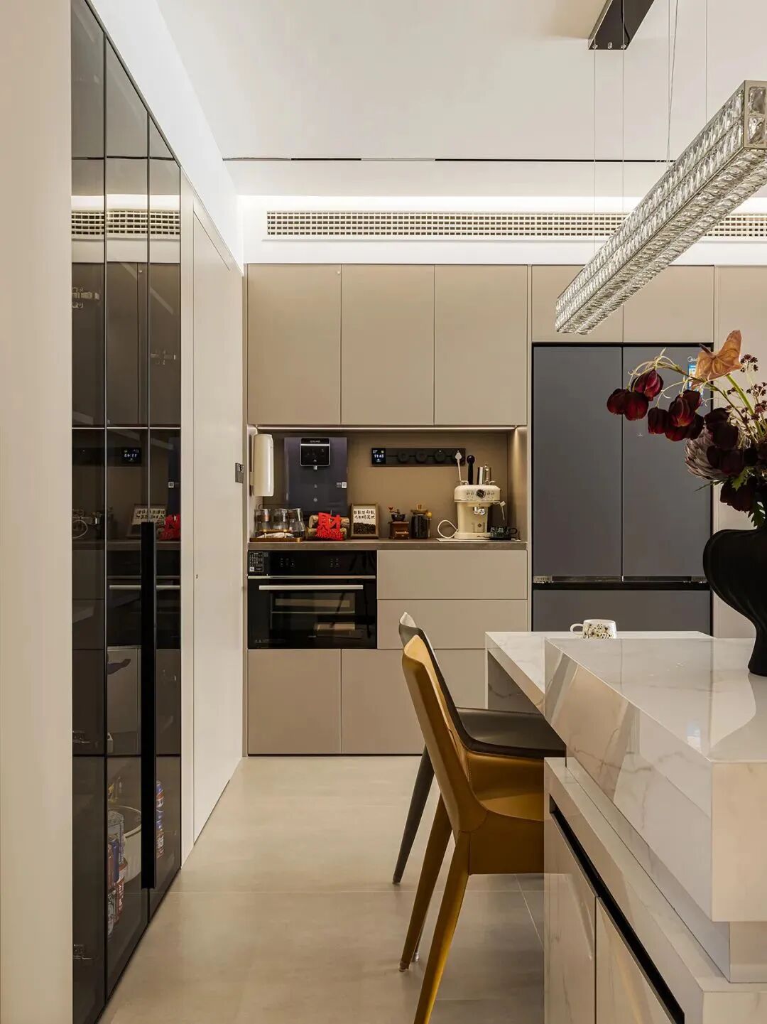 无论大理石的奢华大气,还是金属的冷峻现代,嵌入式冰箱都能无缝衔接,成为家居装饰中的一部分,极大地提升了整个空间的美观度和品质感,彰显主人的独特品味。
