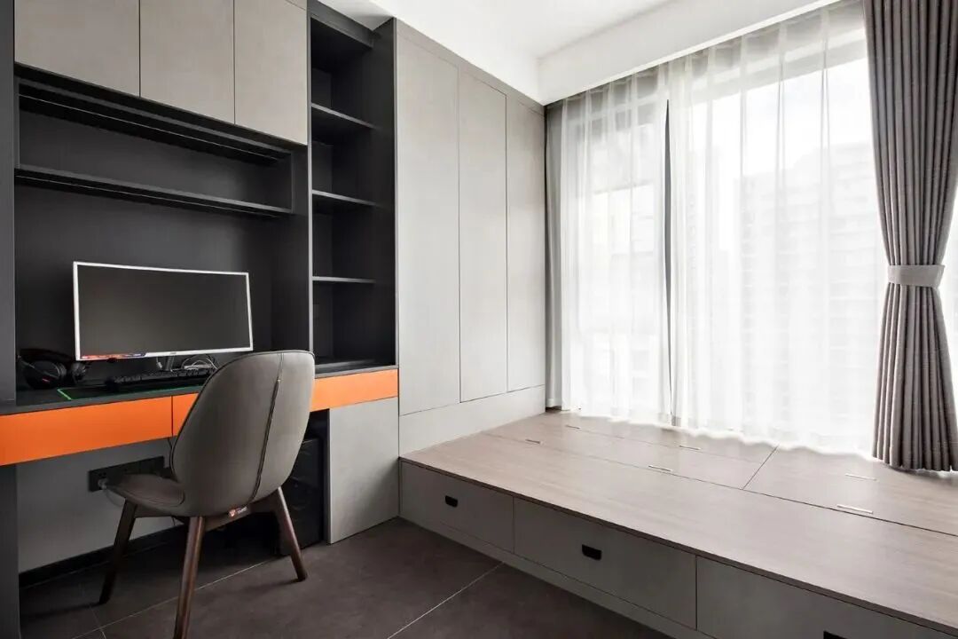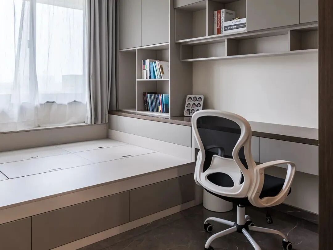现在的榻榻米很多都可以定制抽屉直接在侧面拉开,既兼顾了储物需求,又不会在拿取换季衣物时觉得麻烦。