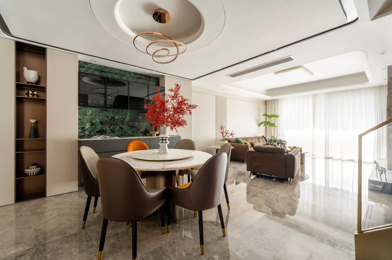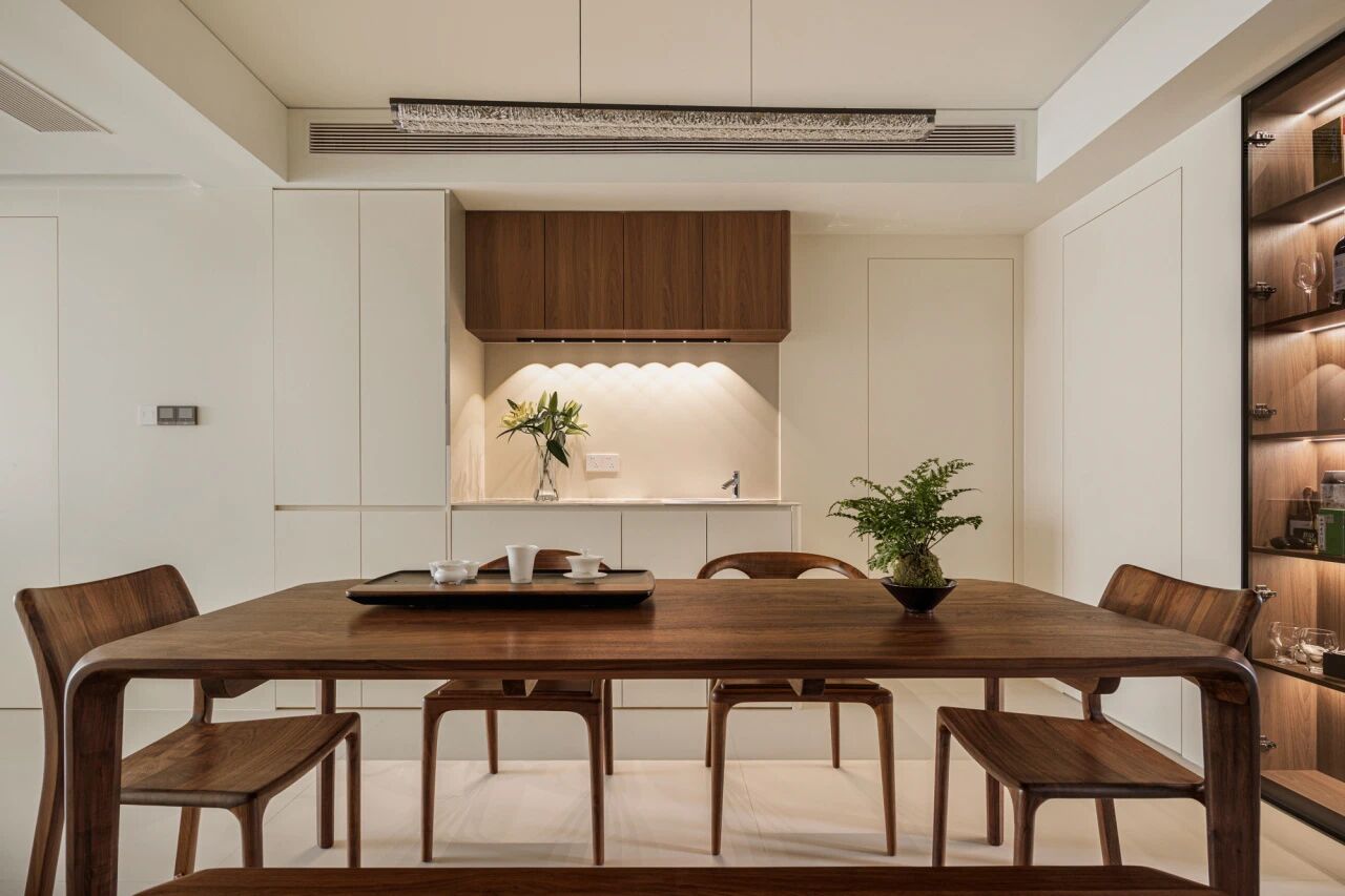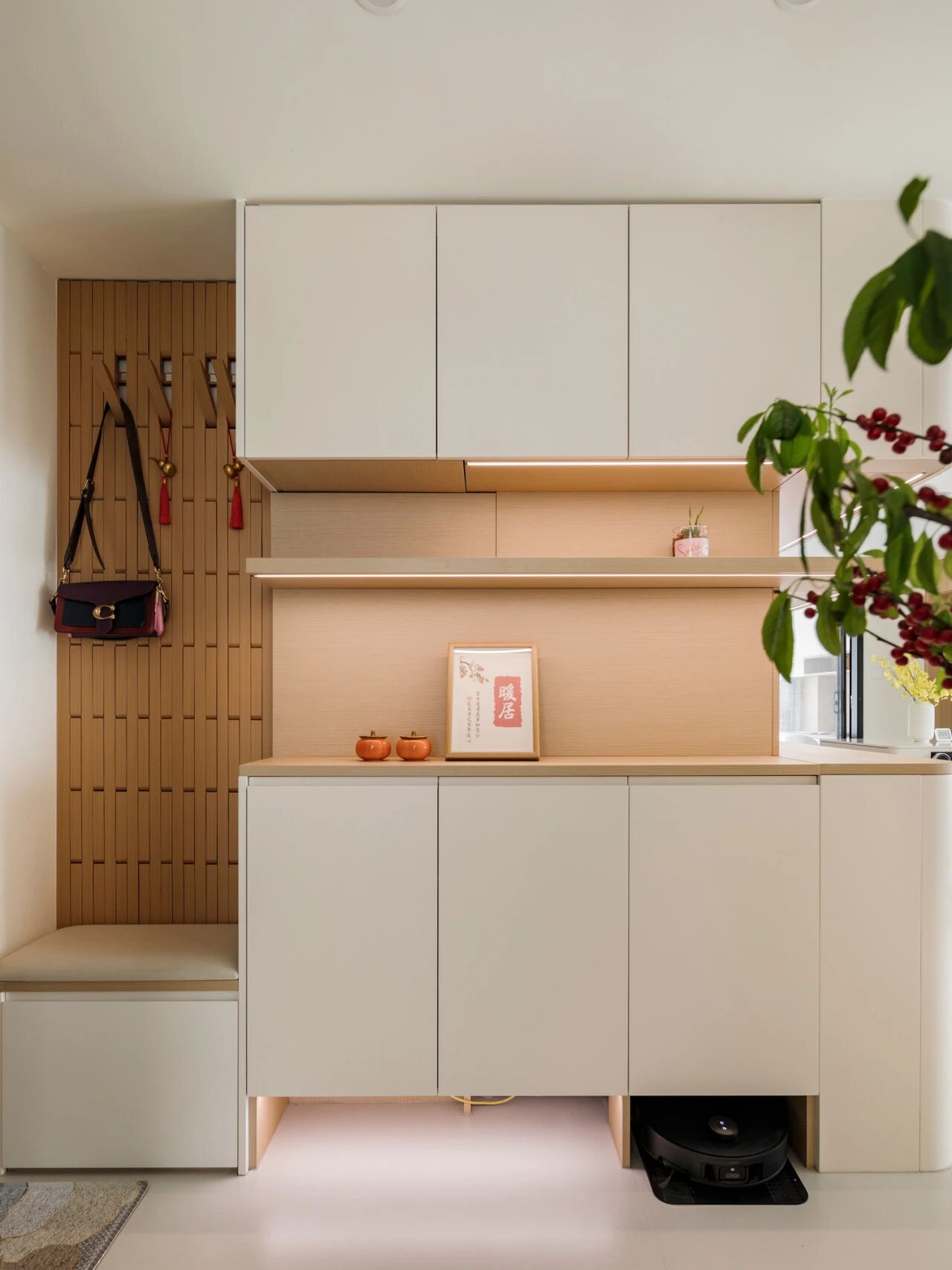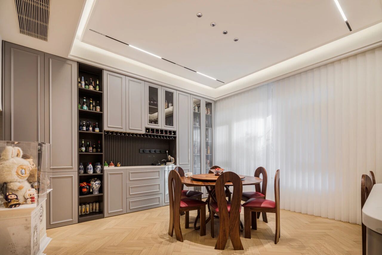 如果家里的玄关和餐厅联通,也可以将餐边柜和玄关柜结合在一起做,进门即获得丝滑的空间切换效果。