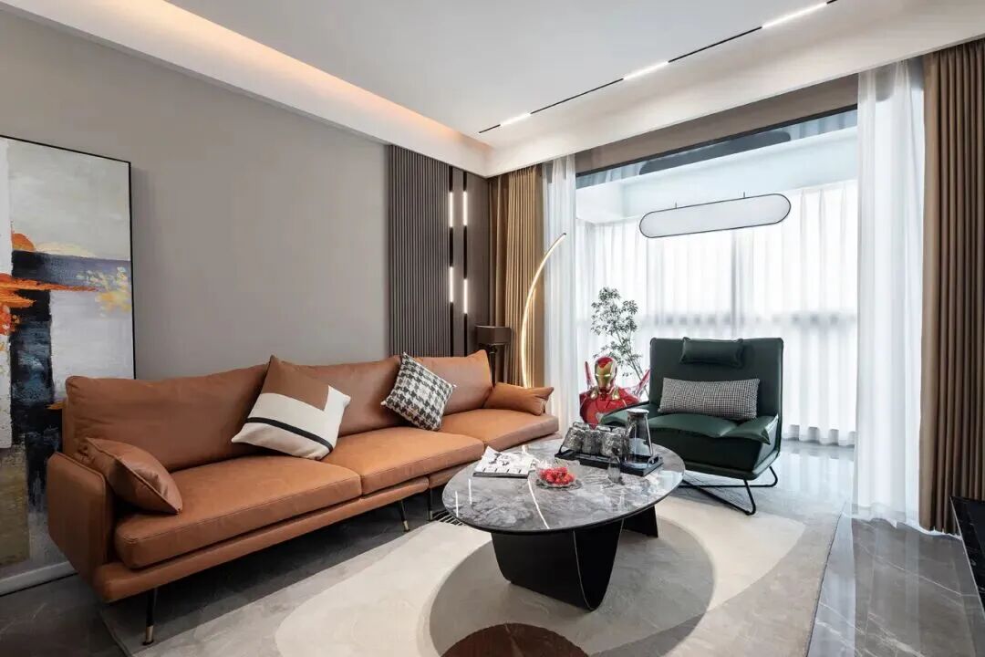 ● 简约的平顶或局部吊顶,省钱又耐看。 ● 利用灯光设计提升层次感,比如嵌入式筒灯或轨道灯。 ● 如果喜欢线条感,可以选择极窄的石膏线,简洁不浮夸。